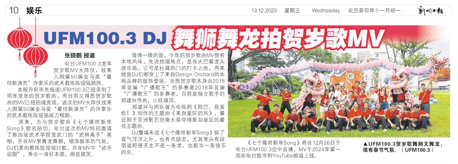 The CNY MV, that UFM100.3 has invited Xuan Sports to be in, will be out in the 1st week of 2024🎉! Keep a lookout for it!