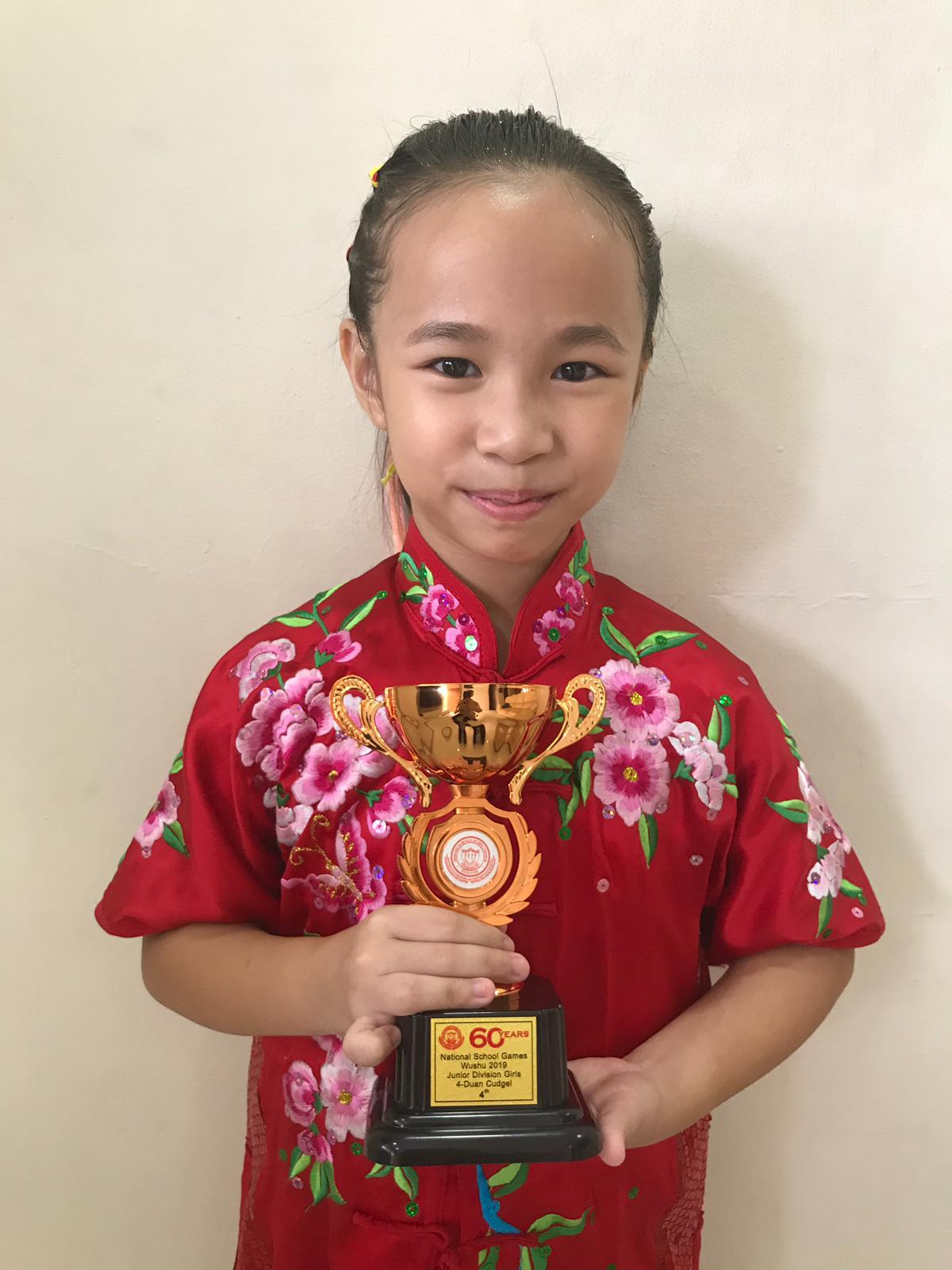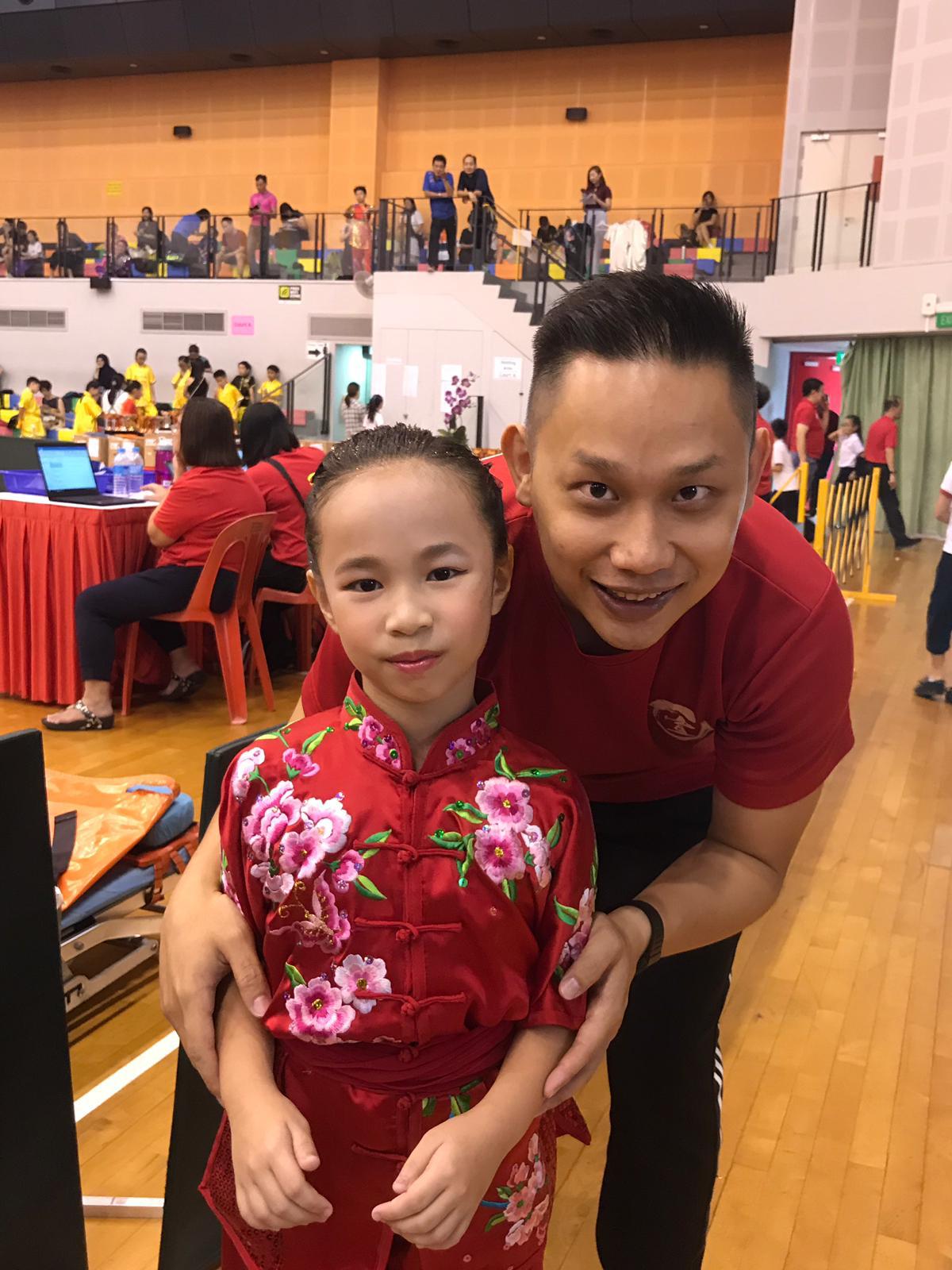 Krislyn is among the most petit of our students for her age. She is a quiet girl who is also one of the favourites among parents due to her cute appearance. Krislyn has consistently trained hard alongside her elder sister, Pearlyn, although they do different routines. Also her maiden time in the NSG Wushu Championships, Krislyn has clinched the fourth position in the 4-duan Cudgel Junior Girls event. She has come a long way from being our Basic Wushu class student to becoming one of the upcoming stars among our Elite Wushu athletes. Well done, Krislyn!